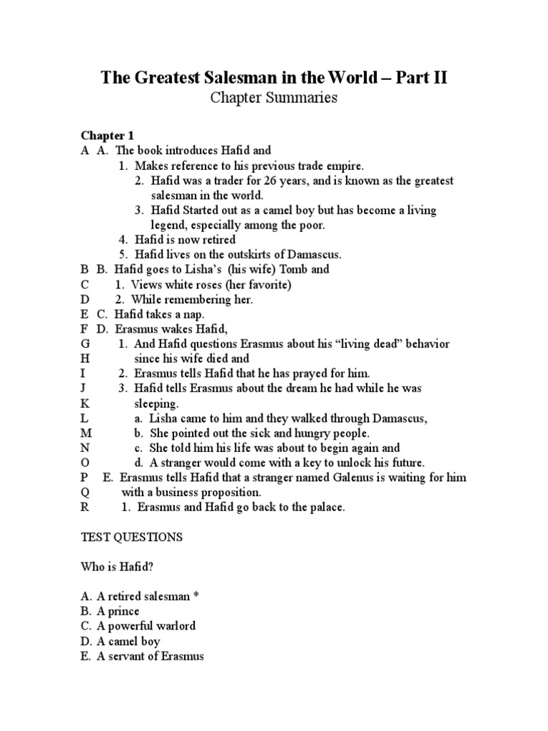 The Greatest Salesman in the World Author. Ask and answer questions about the novel or view Study Guides Literature Essays and more. This document was uploaded by user and they confirmed that they have the.